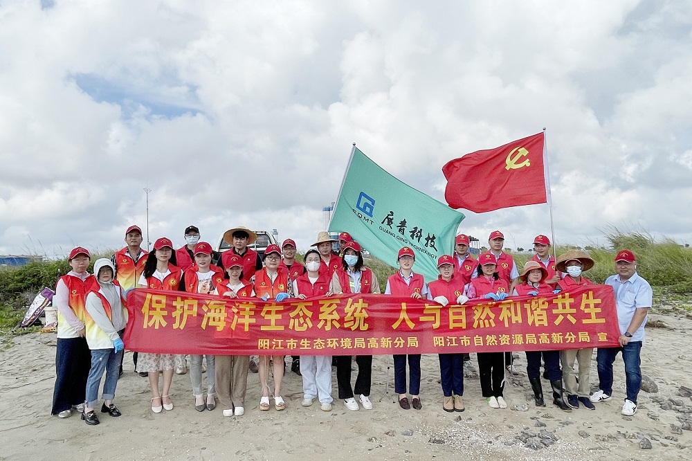 6月22日,广东广青金属科技有限公司综合部党支部党员和公司志愿者参加了由阳江市生态环境局高新分局与市自然资源局高新分局联合开展的“2022年纪念世界海洋日暨全国海洋宣传日”宣传活动,深入学习宣传贯彻习近平生态文明思想,树立和践行人与自然和谐共生理念,提升全员保护海洋的意识,为海洋环境治理贡献力量。