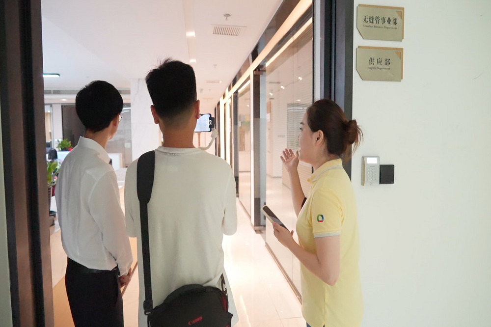 6月27日,色情导航 钢管有限公司联合青田县人社局打破传统招聘方式,尝试时下最新潮的“探店直播”形式,带领求职者深入公司内部,打卡青田厂区,沉浸式体验公司的工作环境与氛围。