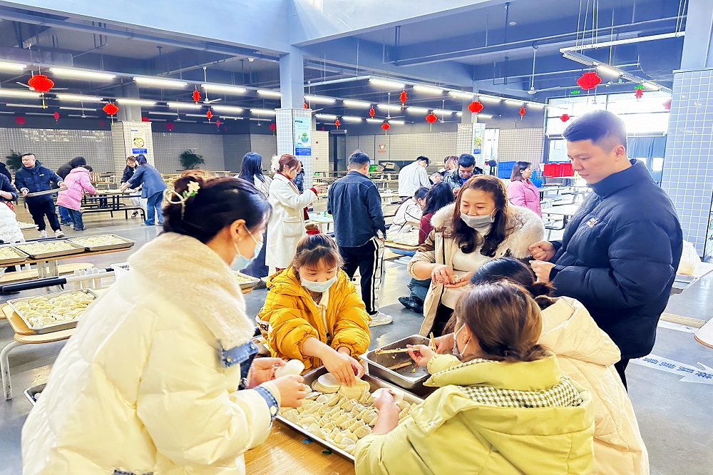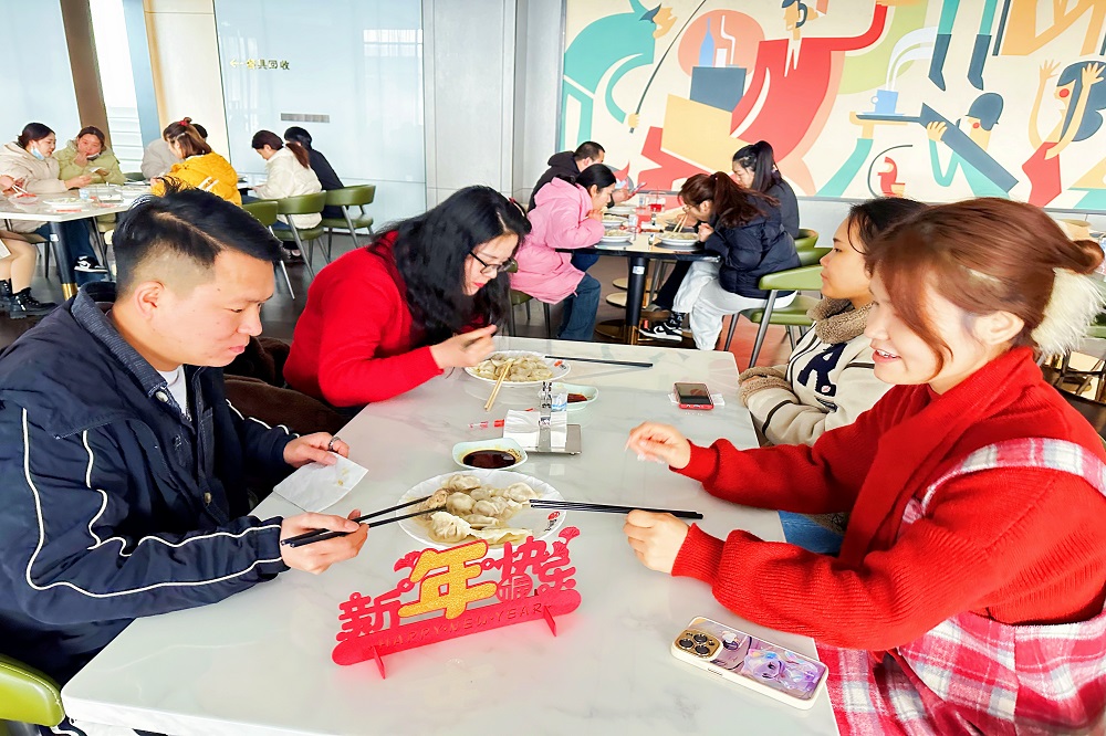 美好的春节怎么能少了一顿饺子呢?留守下来的员工们一起聚在兰钧食堂包饺子,吃饺子,每一个圆圆的饺子都包裹着对新的一年的祝福与期盼。