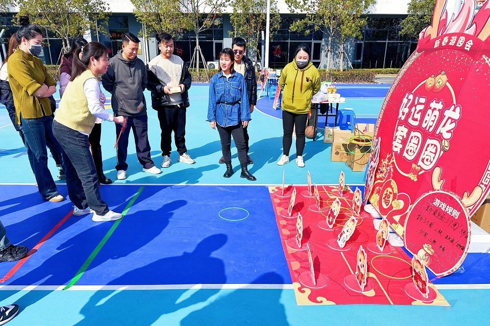 《欢乐套圈》《魅力足球》《新年投壶》等众多互动游戏,阳光明媚的操场上大家玩得不亦乐乎。