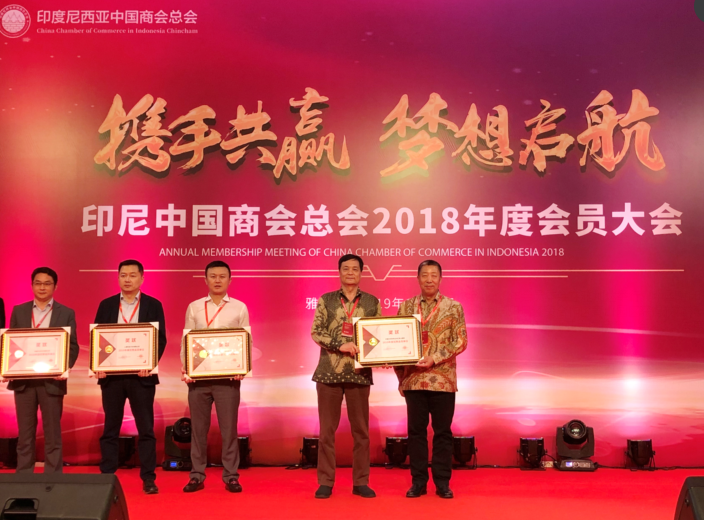 1月13日,印度尼西亚中国商会总会2018年会员年会在雅加达举行,中国驻印尼大使肖千、经商处公使衔参赞王立平莅临大会并做重要指示。中国印尼经贸合作区色情导航 园区获得使馆领导和众多中资企业的认可,从250多家会员单位中脱颖而出,被评为印度尼西亚中国商会总会“2018年度优秀会员单位”,这也是园区连续三年获此殊荣。