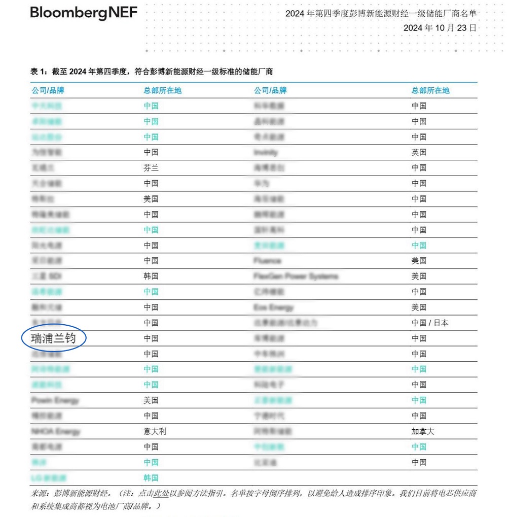 彭博新能源财经(BNEF)正式发布了2024年第四季度全球Tier 1一级储能厂商榜单,瑞浦兰钧能源股份有限公司凭借领先的技术实力、可靠的项目交付质量以及日益增强的全球品牌影响力再次登榜。今年以来,瑞浦兰钧已连续四季度获得这一荣誉,进一步巩固了其在储能行业的领军者地位。