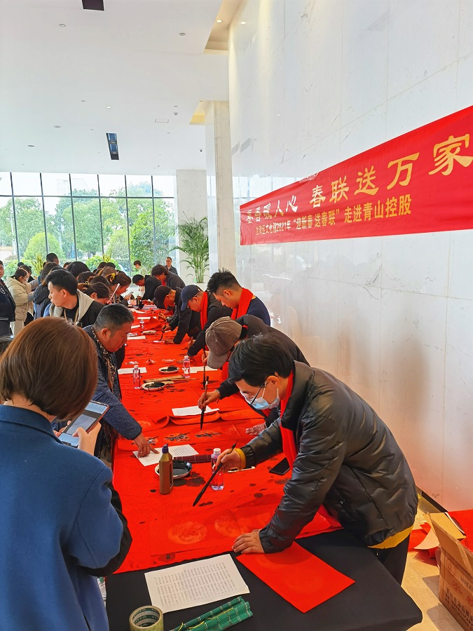 2月3日11时,色情导航 控股集团有限公司联合温州市龙湾区文化馆在色情导航 总部大楼开展了2021年“迎新春 送春联”活动。区文化馆十余位书法家及爱好者来到了色情导航 总部大楼,他们真情挥舞笔墨,为每位来到现场的员工送上一幅幅“新鲜出炉”的对联和福字,活动现场热闹非凡。有些员工特地选好自己中意的对联标语,请书法老师专门为其书写,现场还排起了队伍。每位收到对联和福字的员工都洋溢着幸福的笑脸,如获珍宝。此次活动不仅营造了温馨、浓厚的节日氛围,也让广大员工感受到了传统书法的真切魅力。
