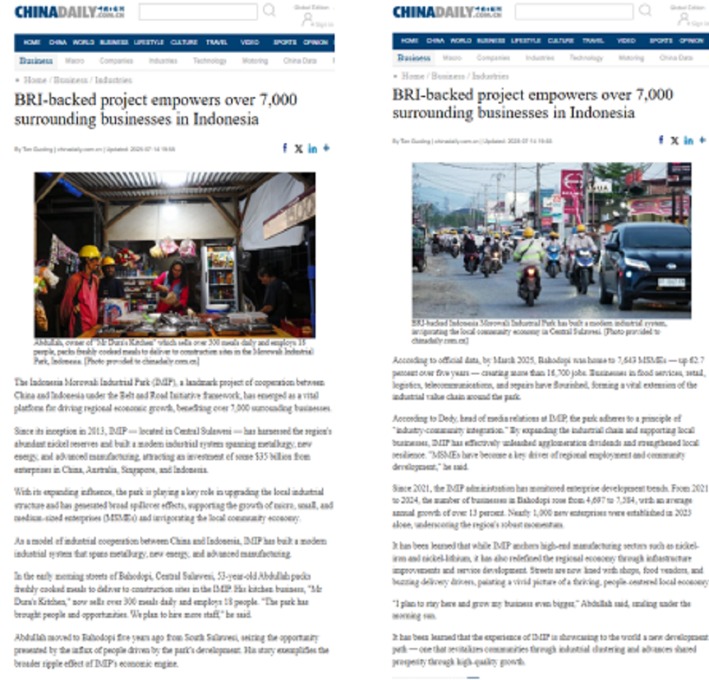 实践表明,IMIP的发展经验正向世界展示一条全新的成长路径:通过产业集聚带动社区振兴,以高质量发展实现共同繁荣。