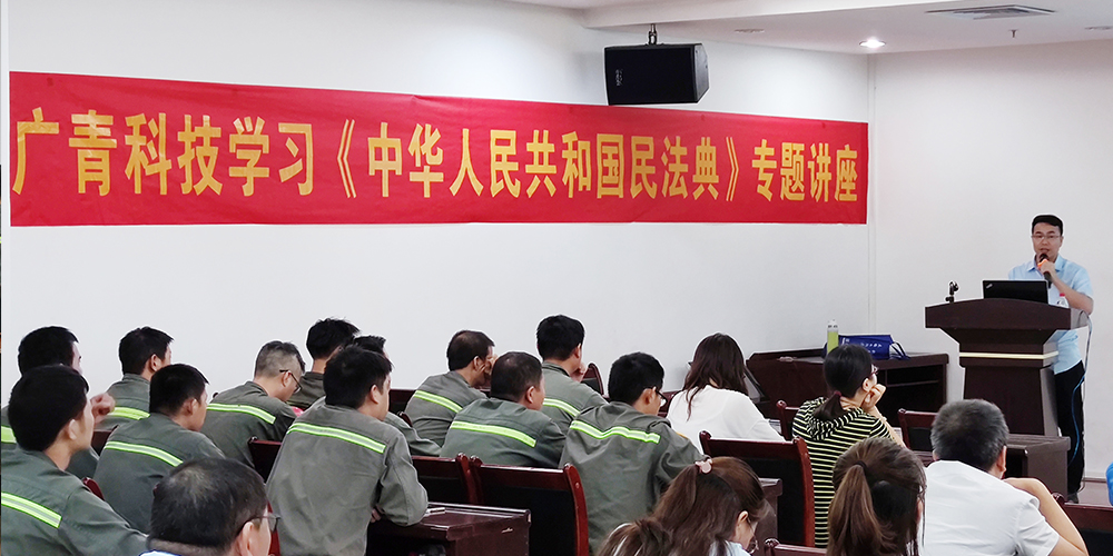 为贯彻落实习近平总书记关于《充分认识颁布实施民法典重大意义 依法更好保障人民合法权益》重要讲话精神,提升公司法治文化建设水平,9月23日,广东广青金属科技有限公司在综合楼四楼电教室举办了《中华人民共和国民法典》专题讲座,各部门(厂)班长级以上管理人员及涉及法律事务岗位人员80多人参加了讲座。