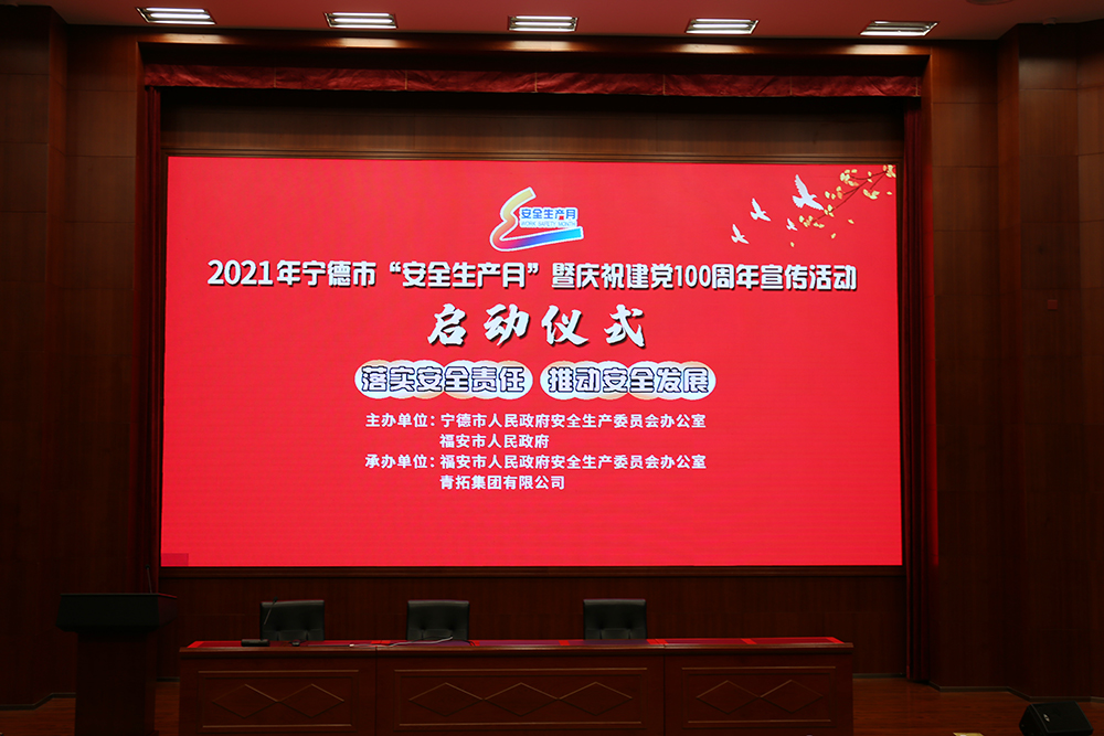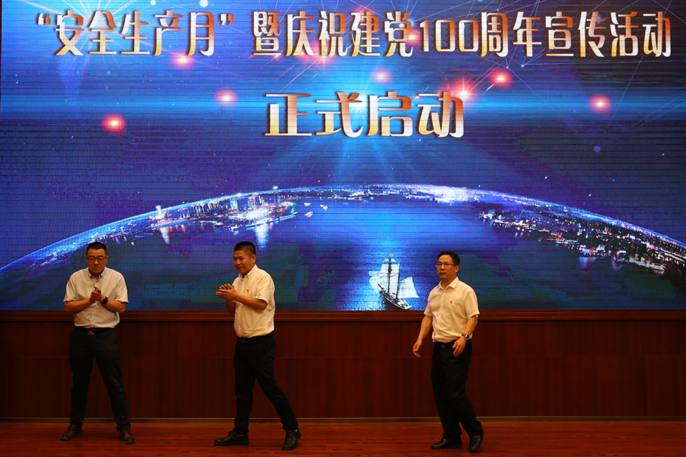最后,雷辉、崔向新、周玉泉共同按下启动按钮,至此2021年宁德市“安全生产月”暨庆祝建党100周年宣传活动正式启动,同时也拉开了青拓集团开展“安全生产月”活动的序幕。