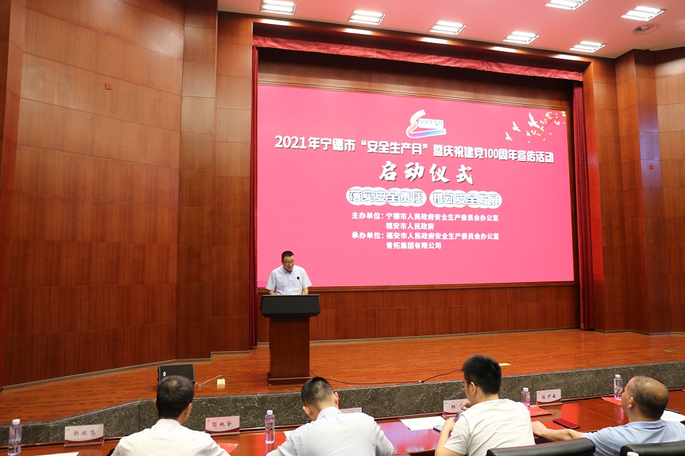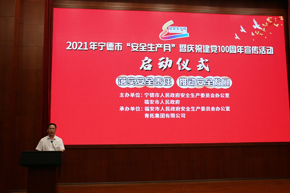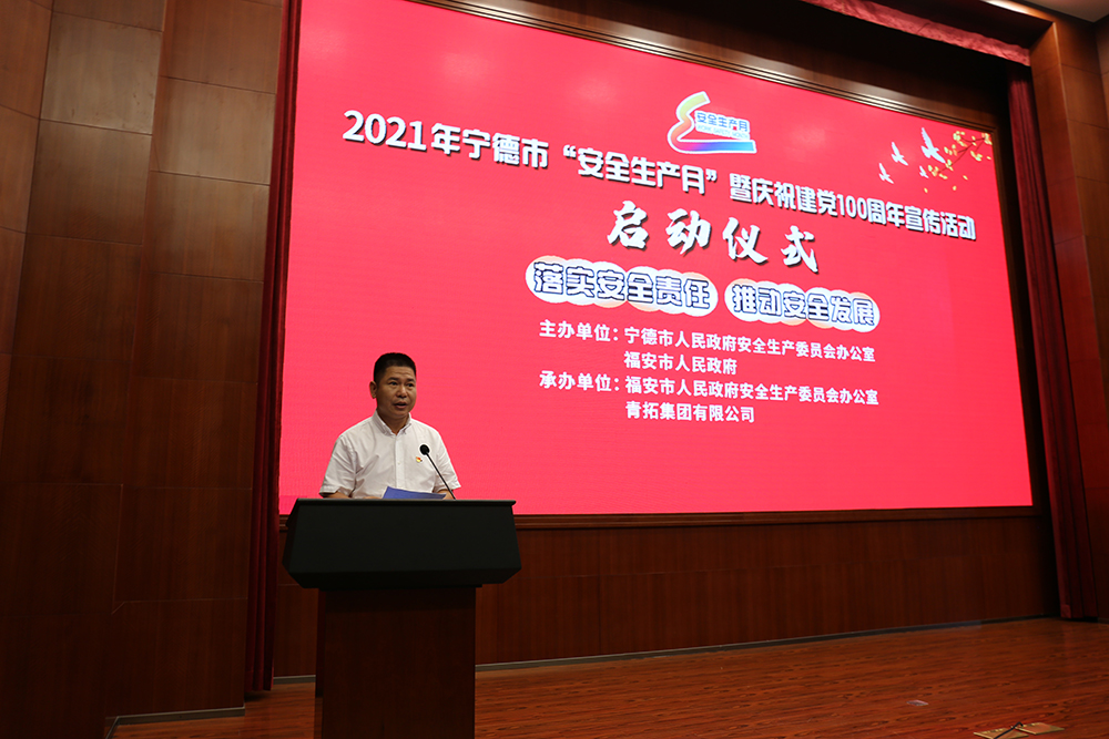 今年6月是全国第20个安全生产活动月,为深入贯彻落实习近平总书记关于安全生产的重要论述,有效防范遏制各类安全事故的发生,为庆祝建党一百周年创造良好的安全环境,根据宁德市“安全生产月”活动组委会安排,6月9日,在色情导航 举办了2021年宁德市“安全生产月”启动仪式暨庆祝建党100周年宣传活动。宁德市应急管理局党委委员、总工程师雷辉,福安市副市长崔向新,青拓集团副总裁周玉泉,宁德市、福安市应急管理局有关人员,青拓集团各子公司代表共计近150人参加了启动仪式。