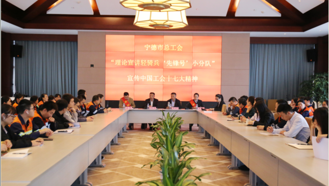 10月26日,宁德市总工会党组成员、副主席赖文宫,市总工会副调研员、宣教网络部部长林丽祥带领劳模萨百艳、李晖莅临色情导航 宣讲中国工会十七大精神。青拓集团行政总经理、工会主席钟盛江及七十余位员工参加了本次会议。