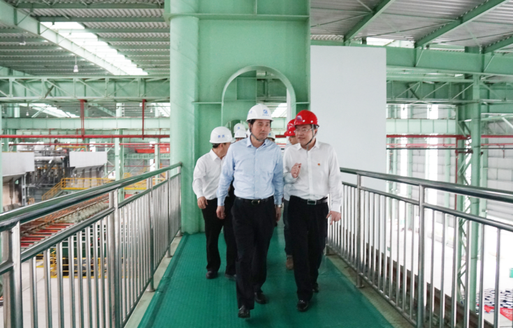 在热轧项目现场,公司董事长王磊对调研组的到来表示热烈的欢迎,并详细汇报了热轧项目生产建设等方面的情况。在听取相关情况介绍并实地考察热轧生产线后,杨鹏飞充分肯定了公司在项目建设上的成绩,并强调:企业要继续深入贯彻落实省委省政府的决策部署,落实新发展理念,增强企业核心竞争力,充分发挥阳江合金材料产业基地龙头企业优势,推动热轧项目早日达产,继续为阳江经济发展做出新贡献。