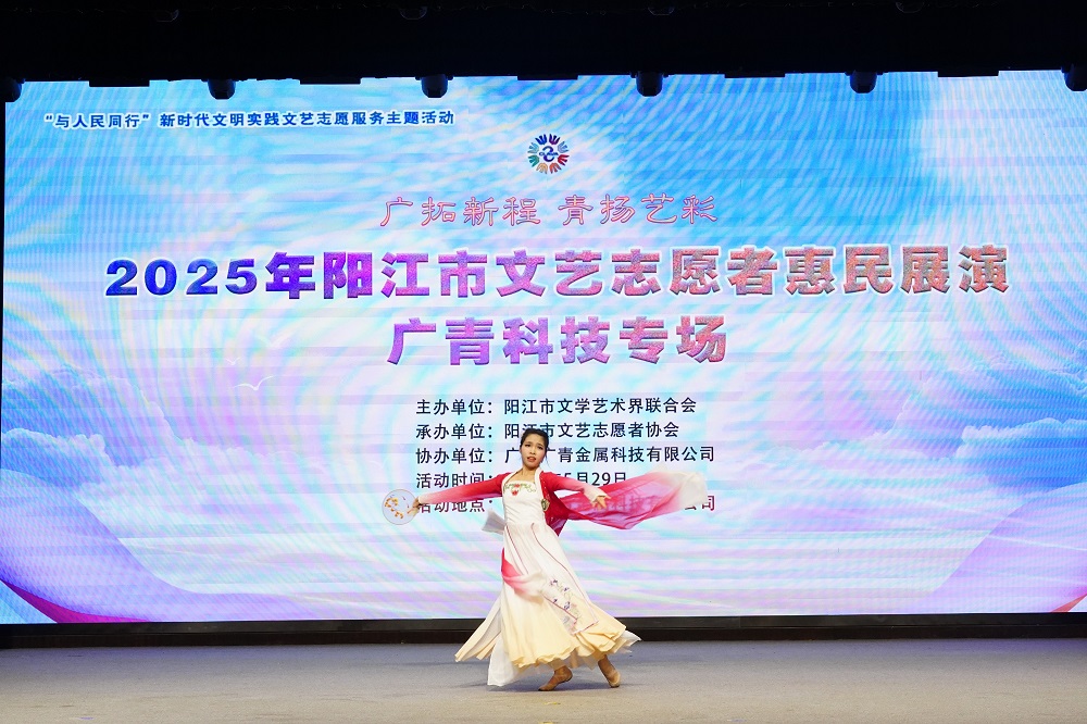 为弘扬社会主义核心价值观与时代精神,持续丰富文明实践活动内涵和职工业余文化生活,5月29日,广东广青金属科技有限公司携手阳江市文联、阳江市文艺志愿者协会,在公司四楼大礼堂举办“广拓新程·青扬艺彩”新时代文明实践文艺志愿服务展演。市文联党组书记、主席叶秀华,公司党委委员、副总经理杨洋,市文联、市文艺志愿者协会相关负责人以及来自各厂部职工代表约400多人共赏文化盛宴。