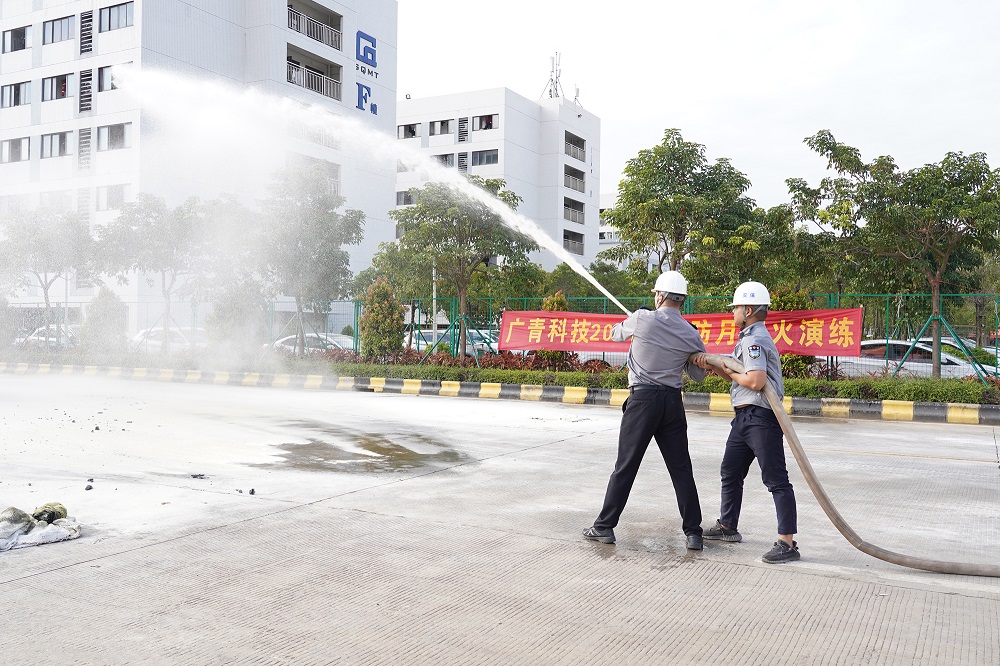 全体参演员工面对提前准备好的火堆,熟练地按照灭火的步骤和方法,将燃起的浓烟大火迅速扑灭。员工们还两人一组进行了消防水带抛接实操演练。