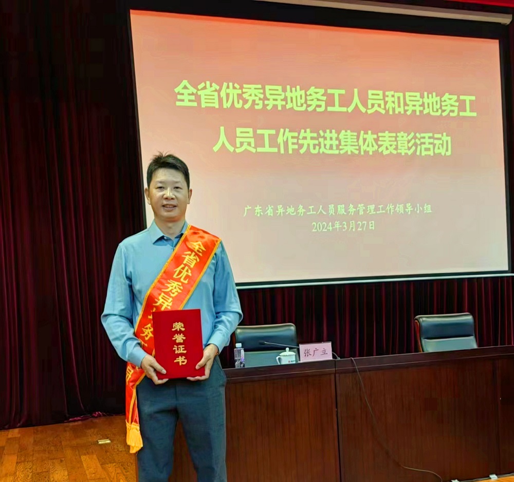 3月27日,广东省异地务工人员服务管理工作领导小组在广州举行表彰活动,隆重表彰全省优秀异地务工人员和异地务工人员工作先进集体,广东广青金属科技有限公司炼钢厂电气主任余坤荣获“广东省优秀异地务工人员”。