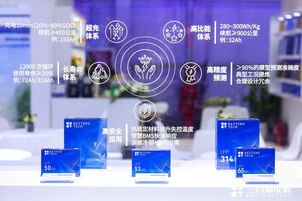 展会现场,兰钧新能源展台前来参观的交流者络绎不绝,升级版的新一代314Ah电芯同样备受瞩目。