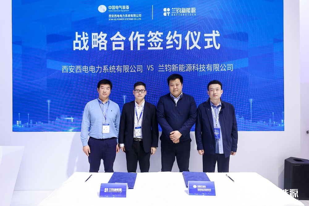 本次展会上,兰钧新能源与西电电力系统签署战略合作协议,就清洁能源项目,包括但不限于太阳能光伏电站、风力电站、共享储能及工商业侧储能等领域进行合作。
