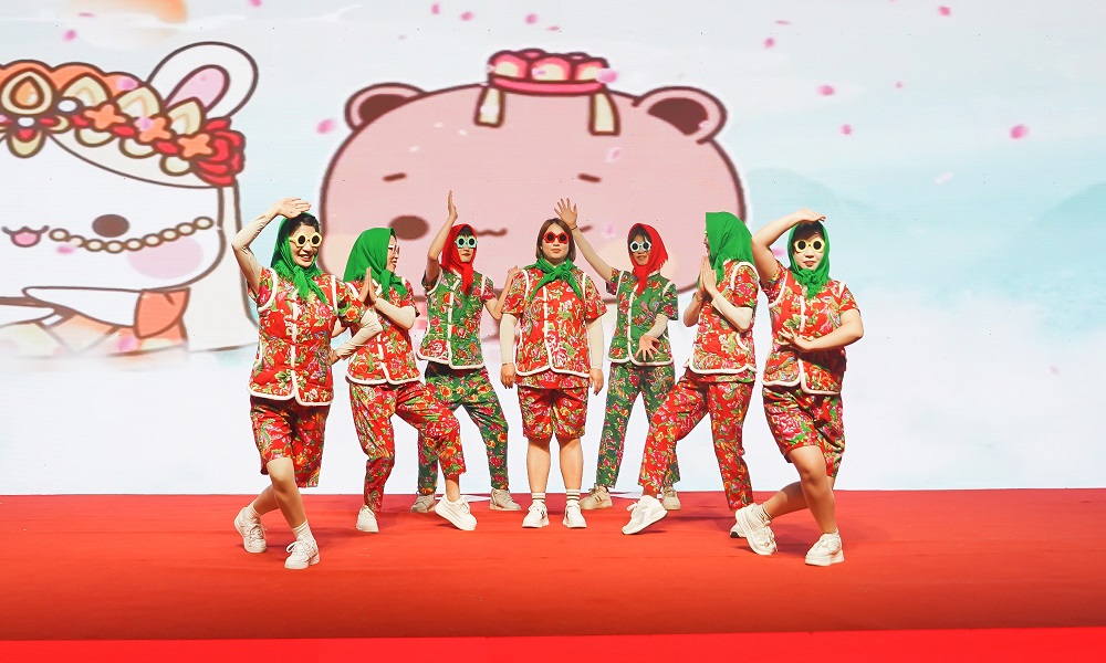 年会在气势磅礴的开场节目《旗开得胜》中拉开帷幕,为在场的每一位员工注入了满满的信心与活力,瞬间点燃了现场的氛围。独唱《大展宏图》、舞蹈《金翅辉煌》《天竺少女》、川剧变脸、互动游戏等节目轮番上演,让现场气氛高潮迭起。抽奖环节更是将年会推向了一个又一个高潮,幸运奖、三等奖、二等奖、一等奖以及特等奖的抽取,让员工们在紧张刺激中感受到了企业的关爱和温暖,现场充满了掌声和欢呼声。