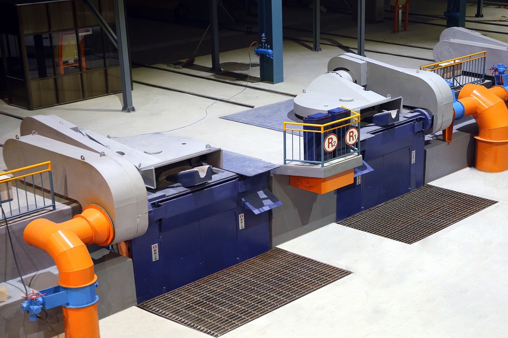 搭载了新研工业水冷磁轭专利设计的12t中频感应熔化电炉是大容量“明星产品”,额定容量12t铸铁,最大容量13.8t,采用无支撑柱线圈和开放式电炉结构设计,具有坚固耐用和易于维护的特点,此外,直流注入式和差动电流式相结合的漏炉检测装置、防跌落保护装置、带炉盖的旋风式吸尘罩使得电炉安全性、环保性得到大幅提升。