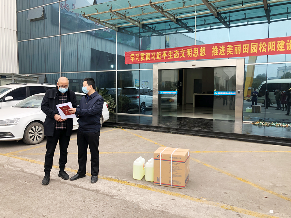 1月22日,松阳县委副书记周鸿飞带领平安办政法委委员金国梁、应急管理局局长潘建伟一行到松阳吉阳好钢业有限公司开展“暖心行动”,赠送公司2000只口罩、20瓶消毒液、《政策汇编》以及留岗红包,政民的有效对接使疫情防护网更加牢固。