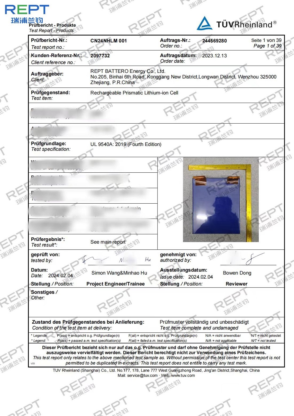 近日,瑞浦兰钧能源股份有限公司问顶345Ah储能电芯通过了德国莱茵TÜV Rheinland颁发的UL1973、UL9540A、IEC62619三项国际权威认证,同时通过了UN38.3认证,这标志着问顶345Ah储能电芯在安全性能上已经达到国际标准,并获得了通往国际市场的通行证。