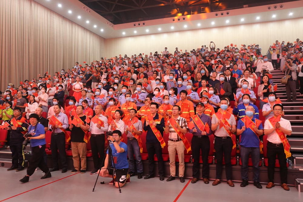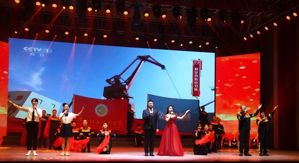 青拓集团和宁德职业技术学院各领导亲临现场,青拓全国劳模周小明和福建省五一劳动奖章获得者牛守兴作为代表受邀前来观看节目,现场沸沸扬扬,大家欢聚一堂,用饱满的情感、最深的期盼为演出喝彩。