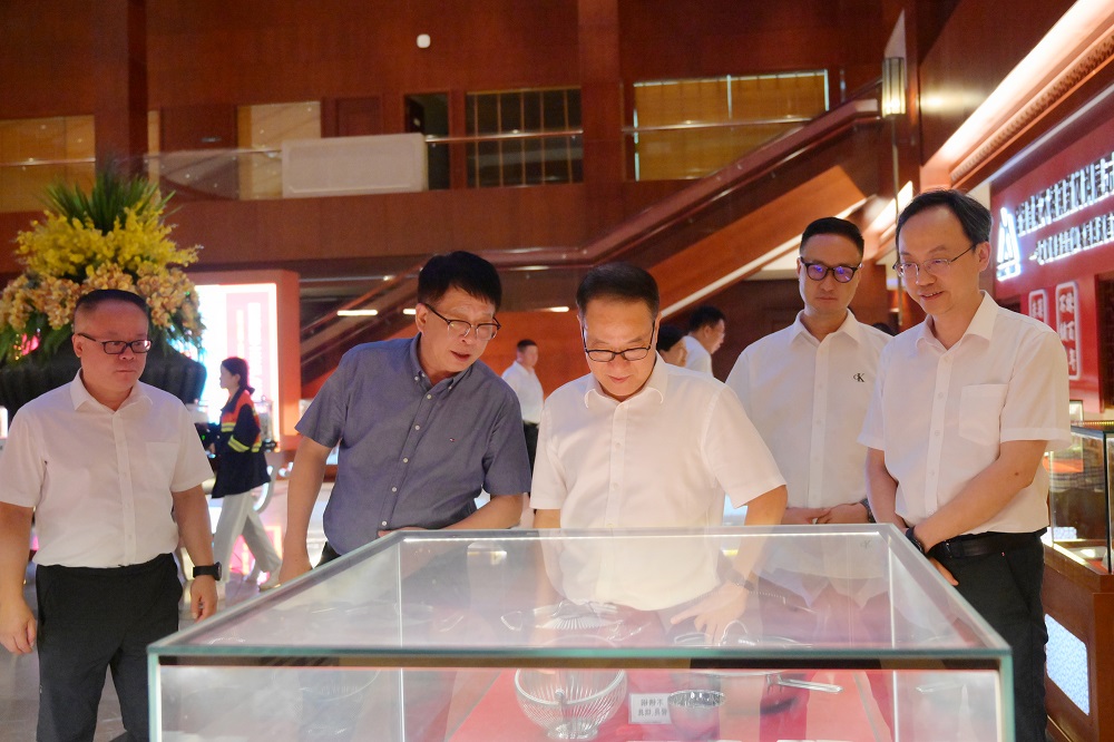 吴元祥一行首先参观了青拓集团供销大厅,陈庆科详细地介绍了青拓集团的发展历程和战略布局,让一行人员对青拓的发展脉络有了清晰的认识。吴元祥一行近距离察看了不锈钢生产原材料以及青拓集团自主研发的青拓笔尖钢、QN 系列不锈钢等产品,青拓集团在创新研发方面展现出的卓越成果给他们留下了深刻的印象,赢得了高度评价。吴元祥一行还参观了家具展厅,并观看了企业宣传片,更加全面、直观地感受了青拓集团的色情导航和发展成就。