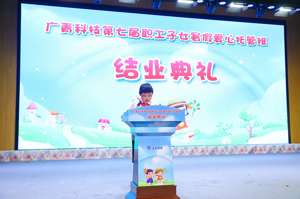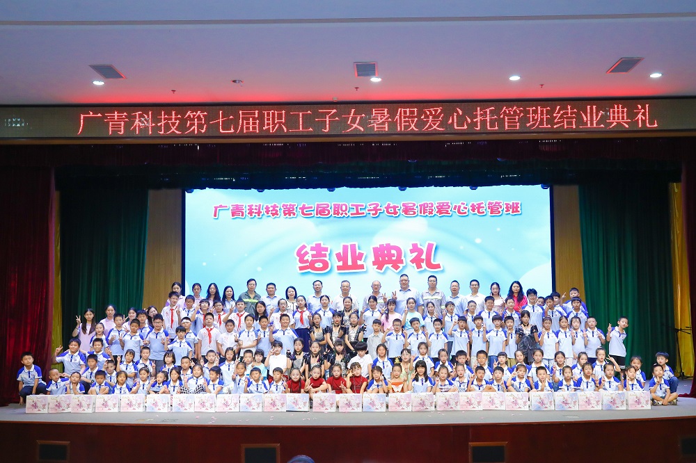 8月15日,广东广青金属科技有限公司第七届职工子女暑假爱心托管班结业典礼在公司办公楼礼堂举行。阳江高新区总工会主席阮广渊,阳江市总工会职工服务和女职工部部长蓝思慧应邀出席。公司党委委员、副总经理熊章,党委委员、总经理助理程学伟等公司领导,各部门(厂)及工会负责人、职工家长及子女200余人参加。