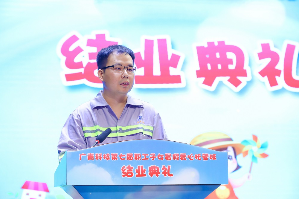 结业典礼上,学生代表李佳航分享了自己的托管班经历,细数了在托管班的收获。职工家长代表陈勇分享了孩子在托管班的转变,并感谢公司工会解决职工子女暑期看管难题。