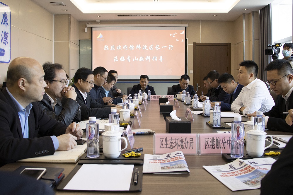 在座谈会上,张珈玮和舟山市普陀区虾峙镇党委书记贺恩盛介绍了金钵盂临港产业园项目进度及面临的难点和堵点。区发改局、区生态环境分局等相关单位逐一回应,并深入探讨可行的解决方案。