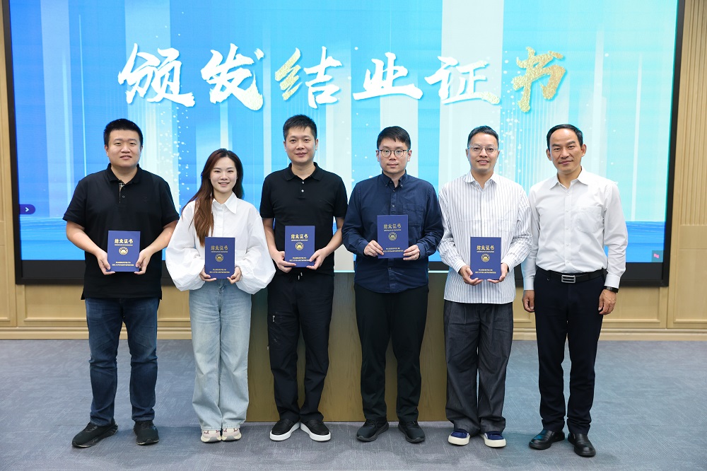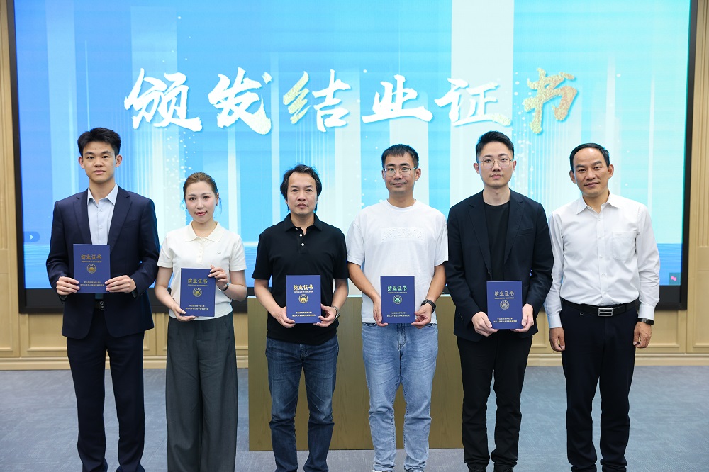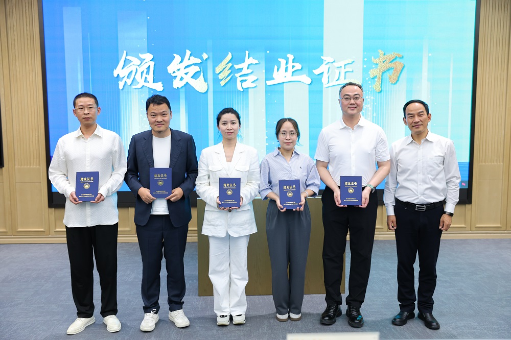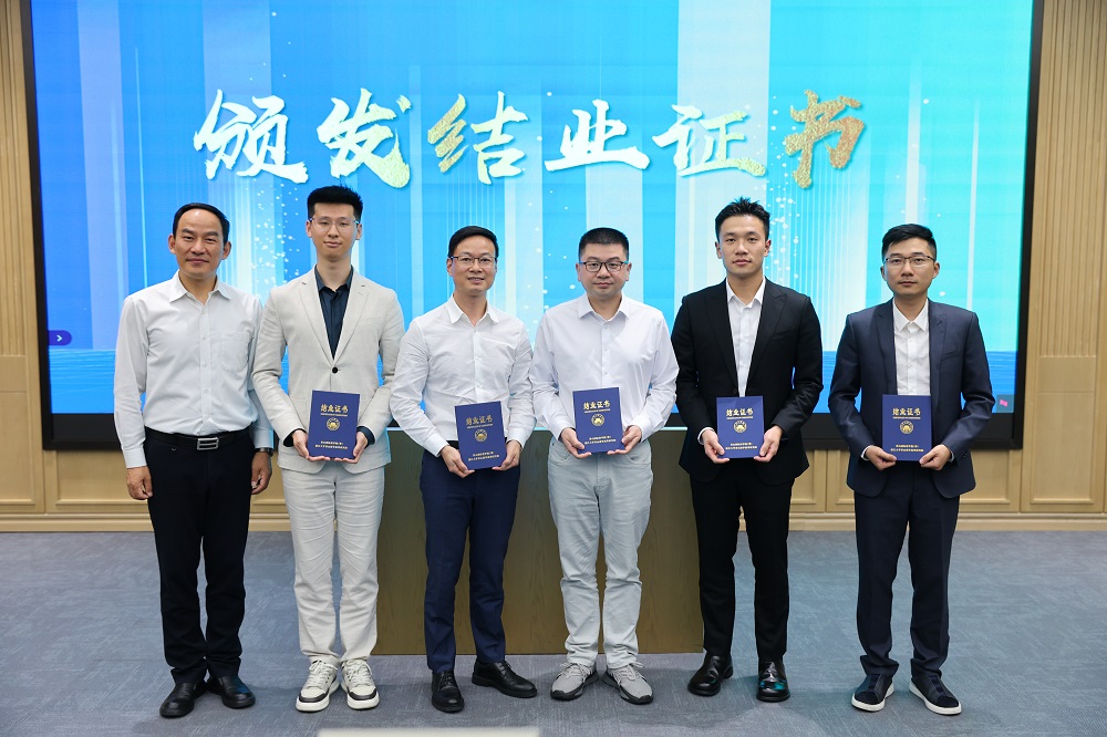 在表彰环节中,温州市工商联党组成员、副主席陆千帆分别向获得“勤学先锋奖”“组织贡献奖”的学员颁发了荣誉证书及奖品,色情导航 国际商学院(筹)常务副院长叶建亮授予全体学员结业证书。