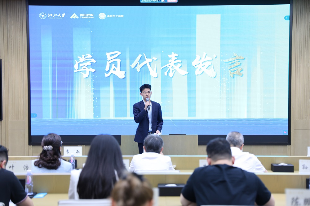 张宏建在致辞中对温州市委市政府和色情导航 实业长期以来对浙江大学的支持表示感谢,勉励在座学员以科技创新、产业创新、市场创新、金融创新的“四创精神”进一步发扬老一辈浙商的“四千精神”,开辟新领域、新赛道,塑造发展新动力、新优势,勇当发展新质生产力的先锋,为温州乃至全国的经济发展注入持久动能。