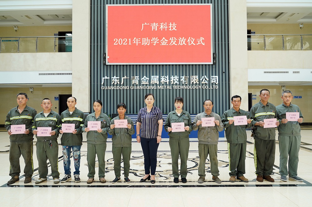 8月31日,广东广青金属科技有限公司工会在公司办公楼大堂举办了助学金发放仪式。公司党委副书记、工会主席王大庆为12个困难职工家庭发放24000元助学金,帮助困难职工减轻子女教育费用负担,让同学们能安心学习,以优异的成绩报答父母、报效祖国。