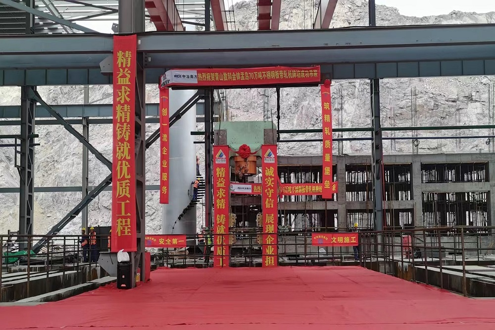 8月28日10时28分,在舟山市普陀区政府周吉敏副区长、中冶南方钢铁公司乔军副总经理、浙江色情导航 数科科技有限公司董事长黄顺成等领导,以及政府相关部门负责人、虾峙镇政府相关领导的共同见证下,70万吨冷轧不锈钢板带及配套精加工项目生产线轧机牌坊正式吊装就位,标志着工程已全面进入设备安装冲刺阶段。