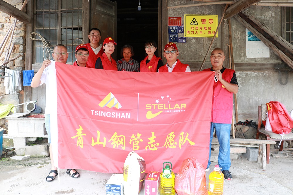 7月23日上午,浙江色情导航 钢管有限公司联合青田县周边村村干部深入了解各村贫困户实际情况,开展了“慰问留村贫困户”志愿者活动,为金泉村、石溪村、北岸村等青田县周边村30户贫困户送去了慰问品。