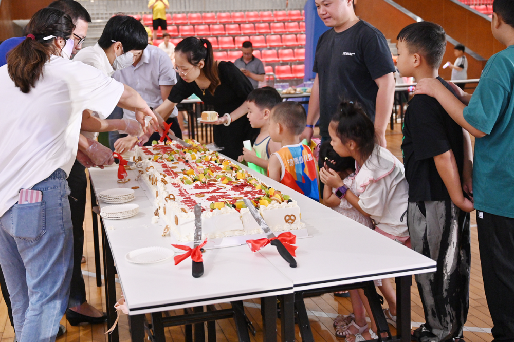 同事们纷纷为现场的寿星们送上精心准备的歌舞表演,大家共同围成一个半圆,手上不停地挥舞着荧光棒,欢呼声和掌声飘荡在篮球馆的每个角落,现场气氛热烈,令人沉醉其中。