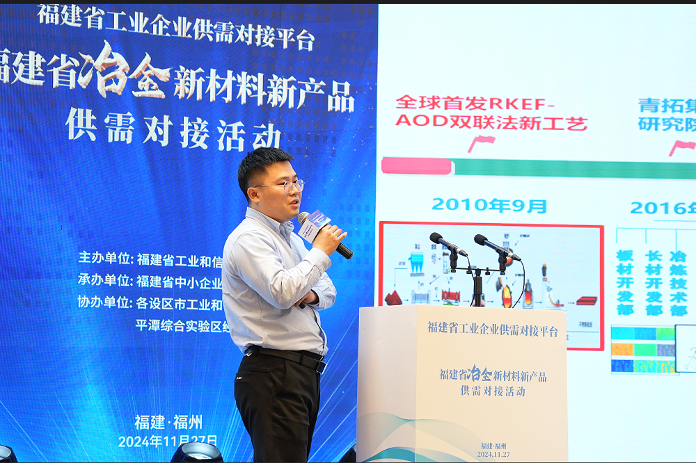 活动现场,青拓集团依托自身规模化生产与技术集成,充分展现企业优势。青拓研究院质量管理部主任工程师孔庆毛登台分享青拓集团重点研发的QN系列新产品以及自主研发的高性能、高性价比新材料,这些产品在装配式建筑、石油行业、高铁隧道、海洋渔业等多个领域得到应用,展示了不锈钢材料在轻量化、快速建造、环境友好等方面的优势。