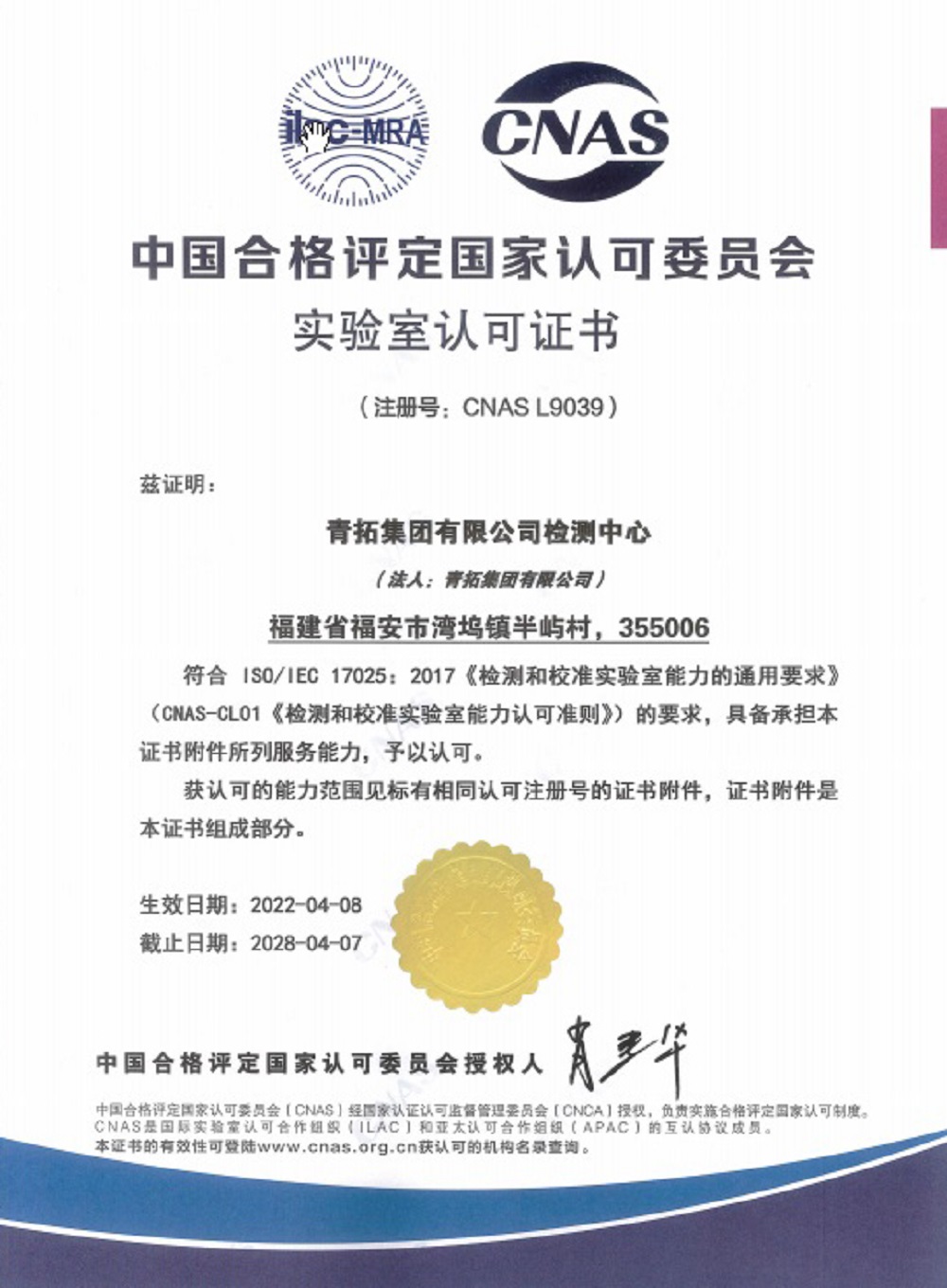 青拓集团检测中心成立于2015年3月,同年5月导入CNAS质量管理体系。2016年3月通过了现场评审,并取得证书。自成立以来共通过了5次复评及扩项,7次标准变更。目前,认可范围有4类,包括钢铁化学成分、机械性能和微观结构、红土镍矿中镍和全铁含量、水质,主要服务于青拓集团内部检测工作。检测中心始终高度重视质量管理和资质认证工作,以科学严谨的态度开展检测工作,把建立健全完善的质量管理体系及具备相应的资质看作是有效开展各项工作的前提,经过8年的发展建设,整体检测能力逐年增强,为企业严把产品质量关,努力为企业高质量发展做出更大的贡献。