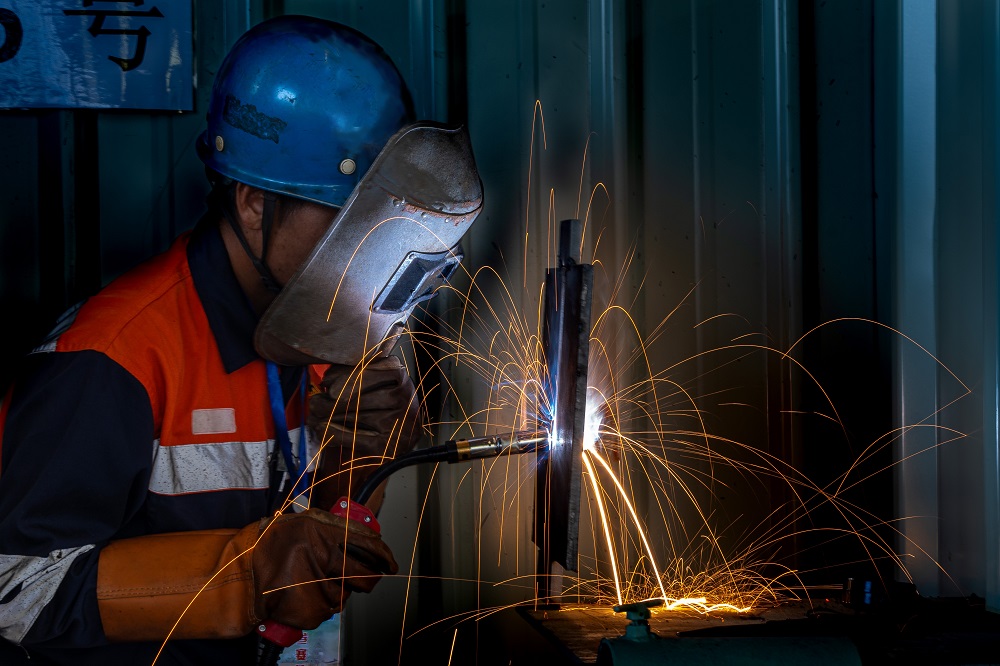 焊工项目比赛共设有板对接立焊3G和管对接水平固定焊5G两个项目,板状对接焊要求选手采用一个方向焊接,不可由中间向两端焊或由两端向中间焊,其余层数的方向和打底焊的方向要一致;管状对接试件5G采用两半圆自下而上焊接。比赛现场火光四射,参赛者们眼神十分专注,镇定自若,操作过程中挥洒自如,充分展现了锐意进取的精神面貌。