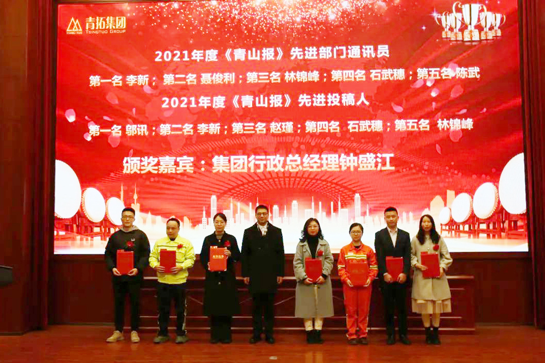 陈庆荣宣读了2021年度先进集体、个人、先进部门通讯员和投稿人表彰文件。各部门部长分别为获奖者颁发了荣誉证书和奖金,并合影留念。