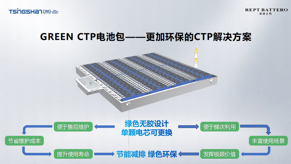 GREEN CTP PACK作为更加环保的CTP解决方案,将快充时间缩短到仅需12分钟,为乘用车绿色出行提供了强有力的支持。同时,由于GREEN CTP采用绿色无胶和单颗电芯可更换的设计,实现了从生产、售后再到二次利用的全周期低碳节能。