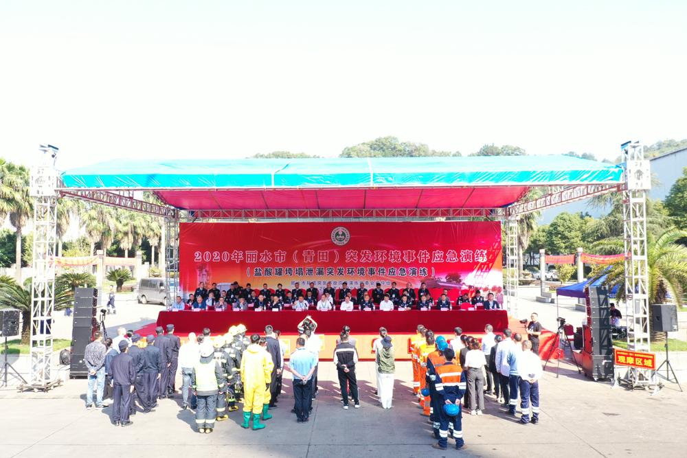 为进一步提高突发环境事件的应急处置能力,最大限度减轻环境污染造成的损失,保障环境安全,10月28日上午,丽水市生态环境局、丽水市应急管理局及青田县人民政府在浙江色情导航 钢铁有限公司开展了2020年丽水市(青田)突发环境事件应急演练。丽水市生态环境局党委书记、局长雷金松,丽水市应急管理局副局长潘新雄,青田县委常委、常务副县长陶军友等领导亲赴演练现场。