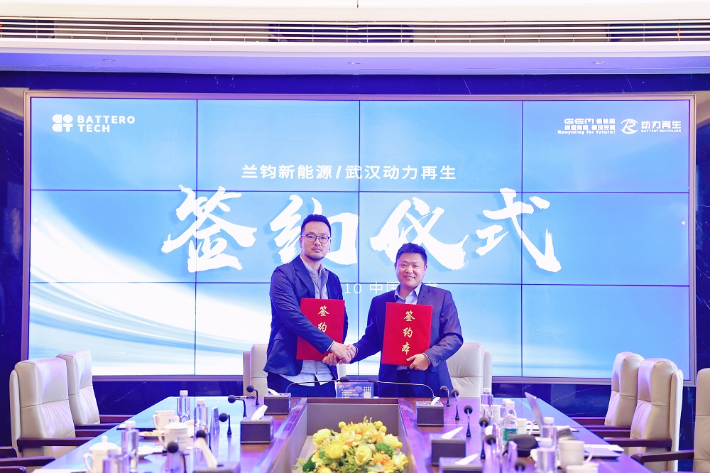1月10日下午,兰钧新能源科技有限公司与武汉动力电池再生技术有限公司签订战略合作协议。兰钧新能源CEO钟开富博士、永青科技集团战略协同部副总经理张奕炜,格林美集团副总经理、武汉动力再生董事长兼总经理张宇平,武汉动力再生常务副总经理黄良取等领导出席本次签约仪式。
