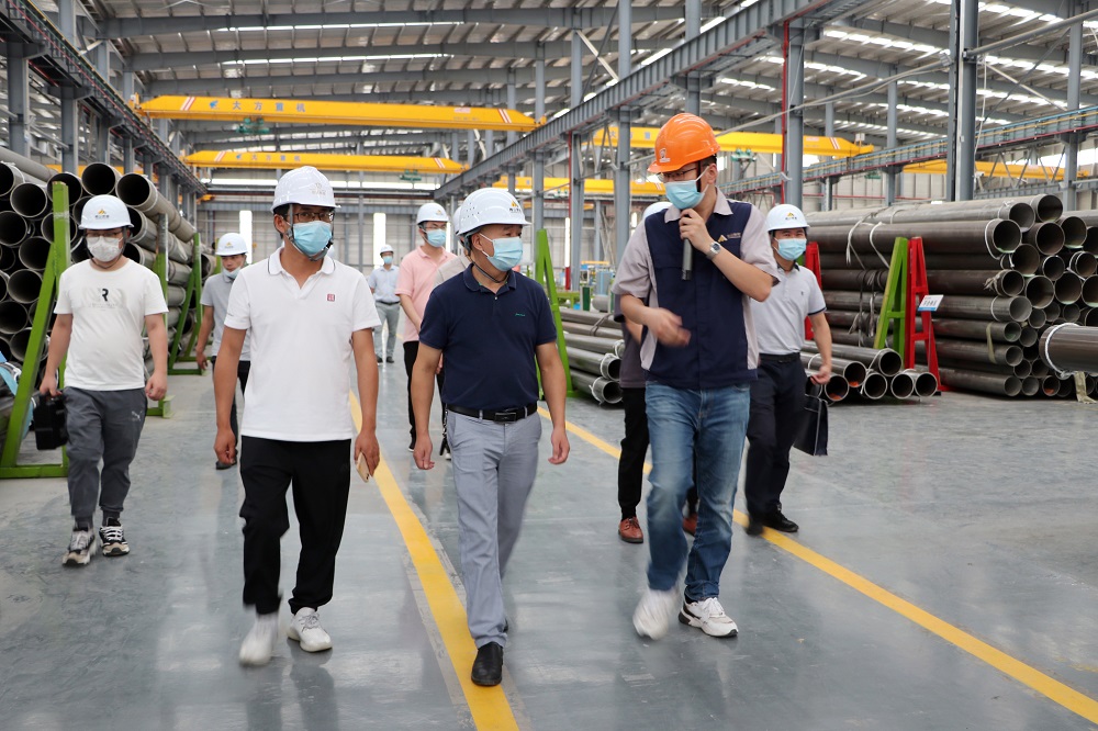 吴良锋一行前往观景平台,观看了产业园全貌并听取相关汇报,随后驱车前往浙江色情导航 钢管有限公司福建分公司,参观了焊管事业部生产车间,详细了解项目建设情况以及企业生产情况。