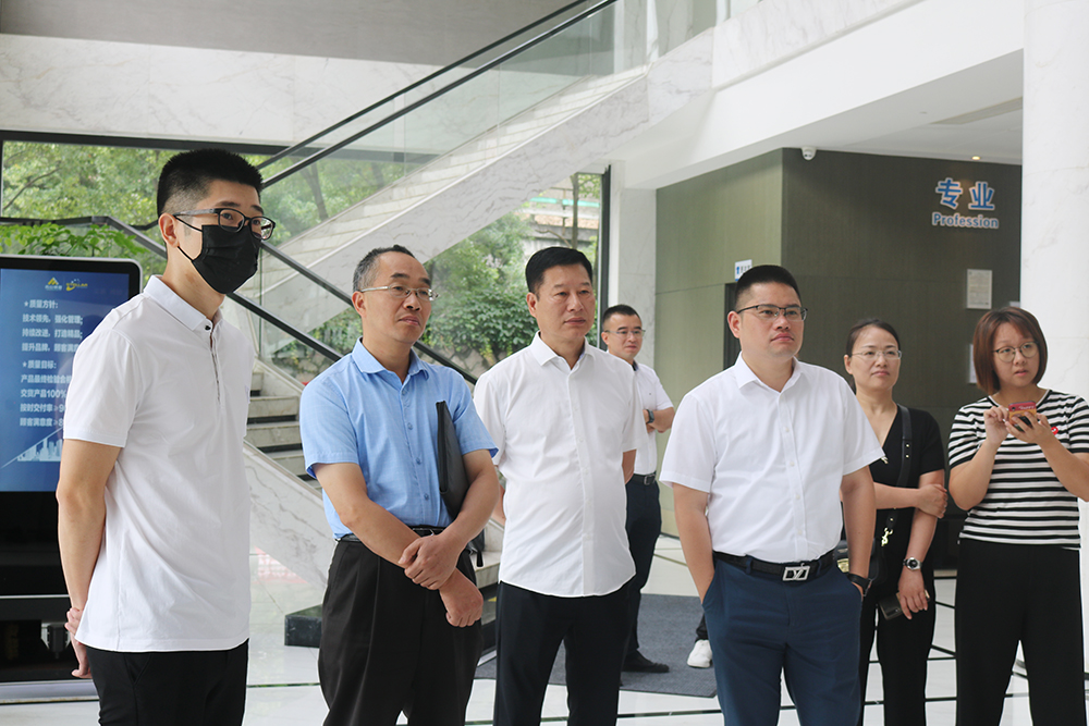 王林祥一行观看了企业宣传片后,到车间实地考察,了解公司基本情况。张路遥围绕调研组提出的企业生产情况、市场分布、订单情况、疫情国际化带来的影响以及目前存在的困难等问题进行了详细汇报。