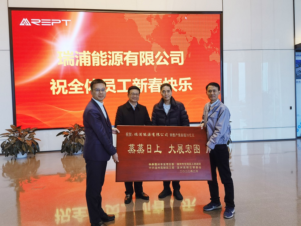 为祝贺瑞浦能源2021年销售产值超20亿,周一富代表龙湾区委、区政府进行了授牌仪式,并希望瑞浦能源在新的一年中顽强拼搏,再接再厉,实现“腾笼换鸟”,力争2022年实现更高的目标。