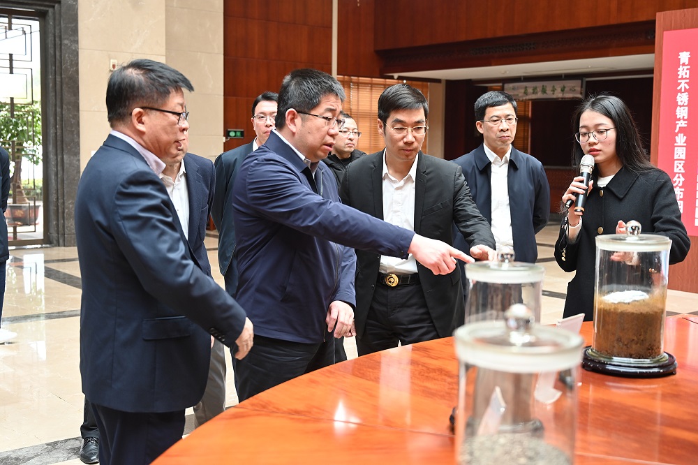 调研组参观了集团供销大厅、研究院、家具展厅、电子展厅等场所,详细了解了企业的全球布局,姜海洪对企业发展、生产工艺等进行了详细介绍。调研组还深入了解了青拓集团自主研发的手撕钢的生产工艺及广泛运用,对青拓集团的发展给予了充分的肯定。