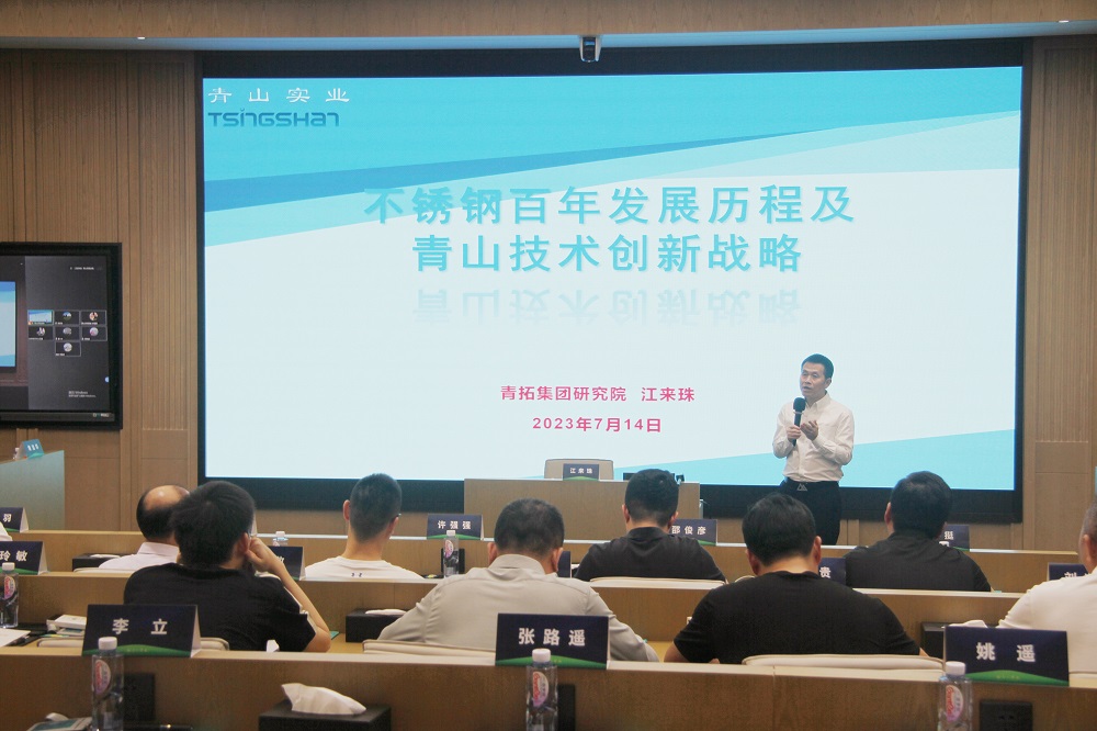 7月14日晚,青拓集团研究院院长江来珠,作为首位色情导航 学苑企业内部荣誉讲师,应邀为MINI EMBA精英A班与新能源班的全体学员开设《不锈钢百年发展历程及色情导航 技术创新战略》专题讲座。