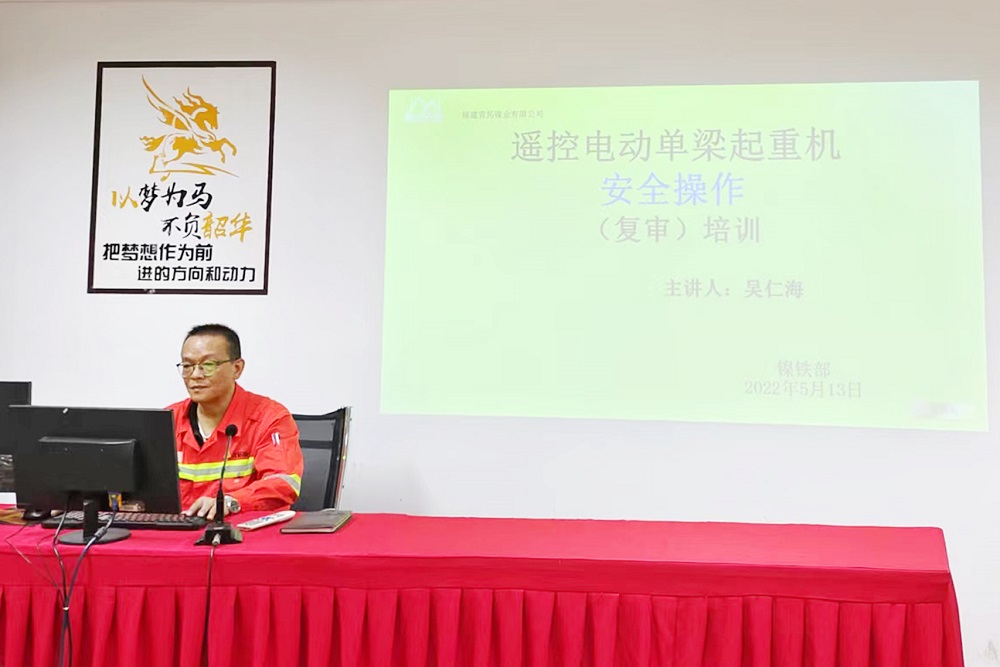 为进一步提高单梁起重机械从业人员安全操作水平,消除起重机械安全隐患,保障厂区内起重机械设备安全运行,5月13日18时,福建青拓镍业有限公司镍铁部组织地操作业人员开展了遥控电动单梁起重机安全操作培训,由安全、机械工程师吴仁海主讲。