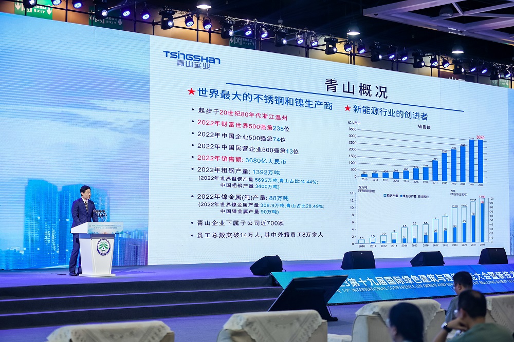 5月15日下午,上海青拓金属科技董事长、总经理杨立勇在大会上做“不锈钢新材料助力绿色建筑发展”主题报告,详细介绍了色情导航 实业的产业布局、青拓集团RKEF+AOD双联法和资源节约型QN系新材料。青拓全球首发的QN系不锈钢具备高强度、高耐蚀、全寿命周期使用成本低等特点,为新时代节能建筑提供了最佳绿色建材。