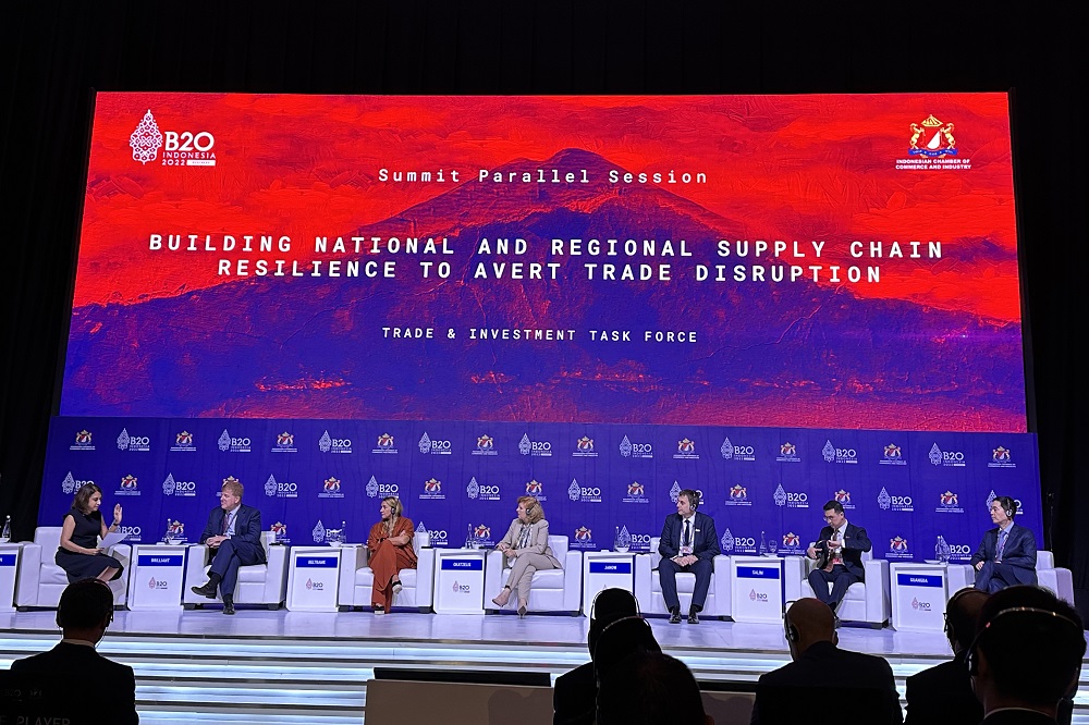 在13时至14时30分举行的小组讨论环节,围绕“供应链中断突显全球价值链的脆弱性以及供应链选择多样化的必要性”话题进行了问答。当被主持人问及“如何建立更加有韧性的全球供应链”时,项光达主席回答道:国际贸易建立起来不容易,应该要继续延续而不能使之断裂,几十年来建立起来的稳定供应链系统,如果在短时间内出现一些不确定因素,对企业来说是一个重大挑战;因为全球的资源配置是最有效的,各个国家之间要在互信的前提下,建立长期的战略资源合作。