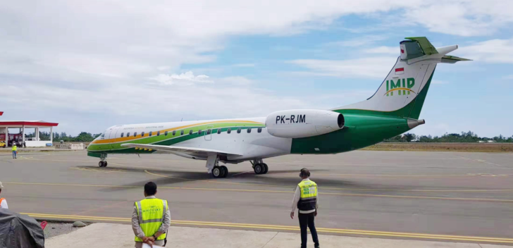 10月3日10时50分,印尼色情导航 工业园区机场迎来了自用的载客飞机。IMIP园区董事长伍华弟、IMIP执行董事兼总裁郑宗悦等领导共同见证了飞机在自建机场降落至滑翔停稳的全过程,伍华弟宣布机场和飞机正式投入使用。