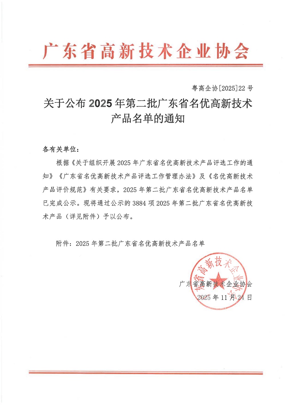 三项产品成功入选2025年第二批广东省名优高新技术产品名单